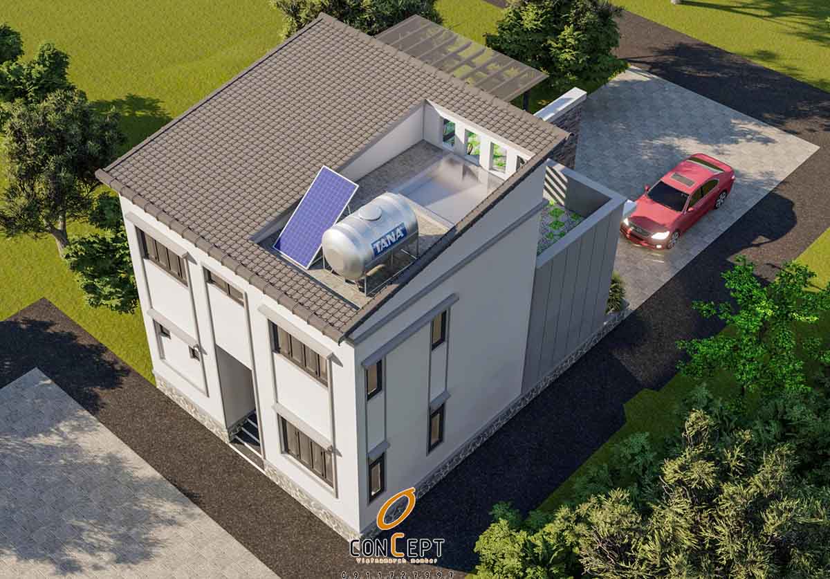 Vật liệu sử dụng trong thiết kế nhà phố 100m2 tại Thái Bình được lựa chọn theo tiêu chí bền, dễ bảo trì và phù hợp với điều kiện khí hậu địa phương. Hệ mái, tường và ban công được xử lý kỹ về chống nóng, chống thấm nhằm đảm bảo chất lượng công trình trong quá trình sử dụng lâu dài.