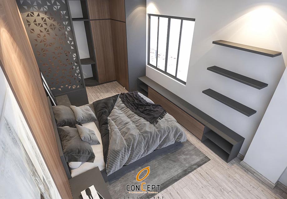 - Tủ áo âm tường tiết kiệm diện tích.