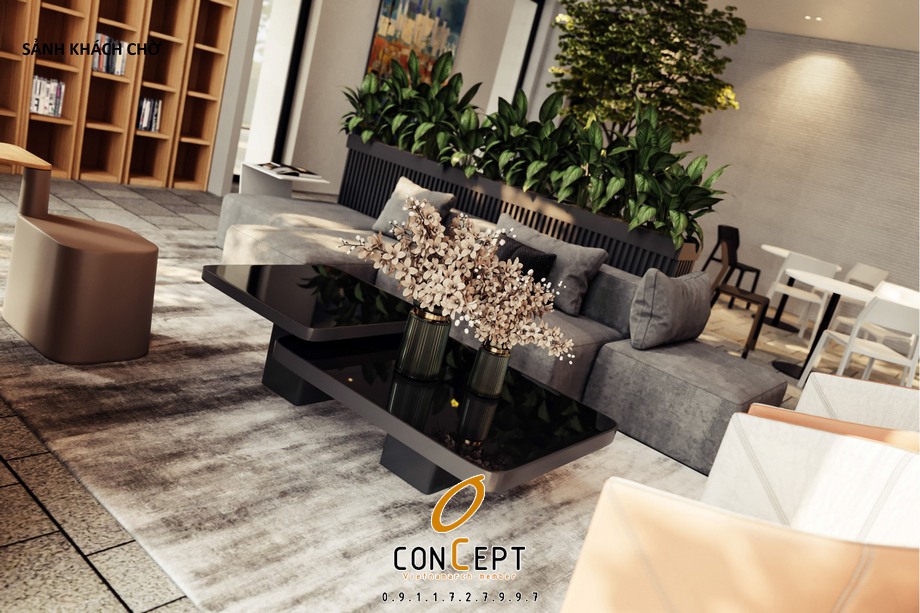 Sảnh khách chờ được thiết kế để đáp ứng nhu cầu chờ đợi của khách hàng và khách tham quan. Đây là một không gian thoải mái và chuyên nghiệp, có thể cung cấp các tiện ích như ghế ngồi thoải mái, khu vực chờ đợi và thông tin về các dịch vụ và hoạt động trong tòa nhà.