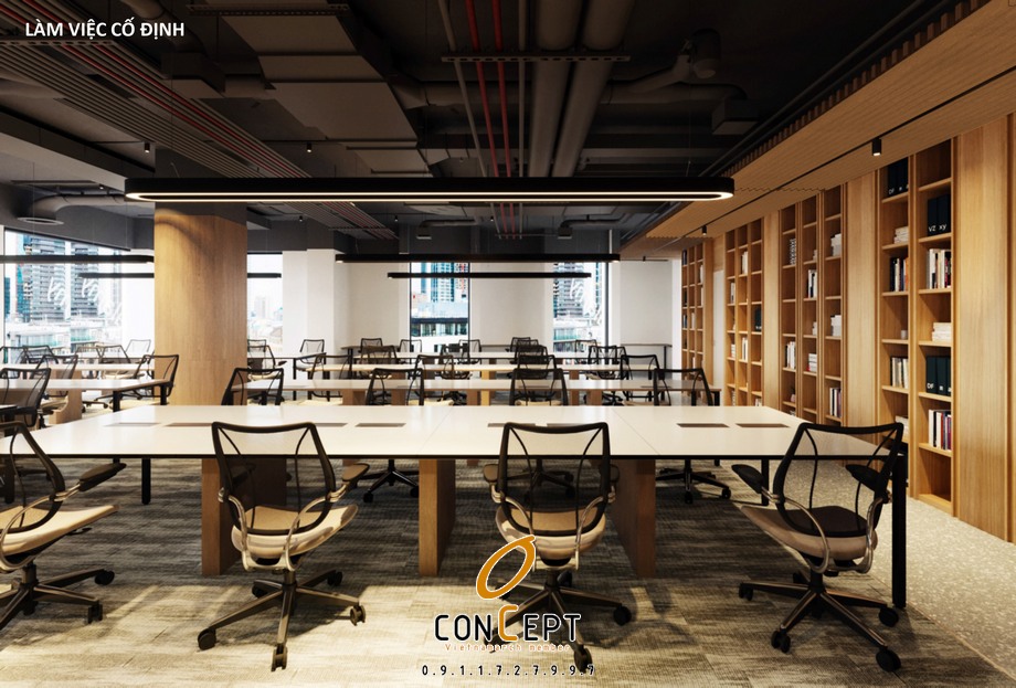 Khu vực làm việc tập chung là nơi mà nhân viên có thể tập trung vào công việc cá nhân. Đây là không gian yên tĩnh và tách biệt, được trang bị các trang thiết bị và tiện nghi để hỗ trợ công việc hiệu quả. Nó tạo điều kiện thuận lợi cho sự tập trung và sáng tạo.